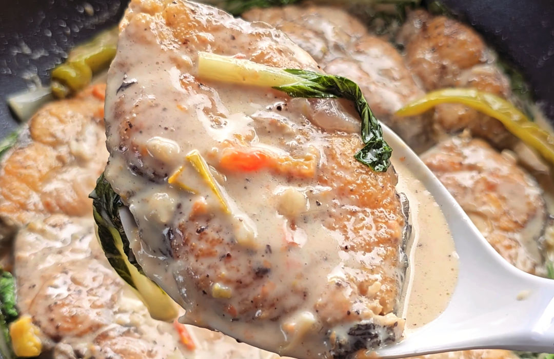 Ginataang Tanigue is a deliciously comforting Filipino dish made of Spanish Mackerel, seasoned, fried, then simmered in a flavorfully rich tasting coconut milk base seasoned with aromatics and spices. This creamy, savory dish blends the natural strong bold flavor of the fish with the subtle sweetness and nuttiness of the coconut milk. The perfect ulam to enjoy with steamed hot rice.