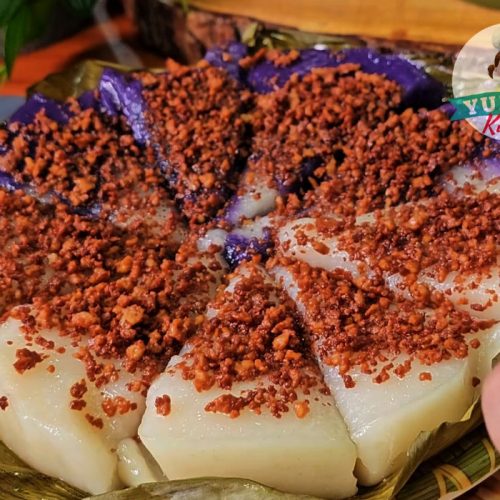 • Take this out and brush the top with coconut oil, and decorate with latik. Slice, serve and enjoy!